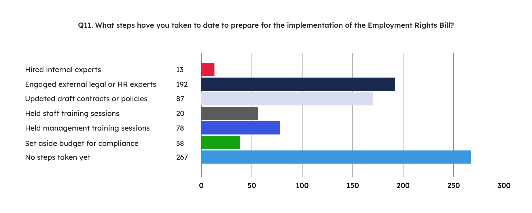 “These changes are coming whether businesses like them or not, so preparation is key. Just over half the businesses we surveyed have started to plan for the implementation of the Bill, with only 12% stating that they feel ‘very prepared’. Those without internal HR knowledge should seek advice to ensure they stay ahead of all the incoming changes, keeping policies and processes up to date with all latest legislation and reducing the risk to their business.”